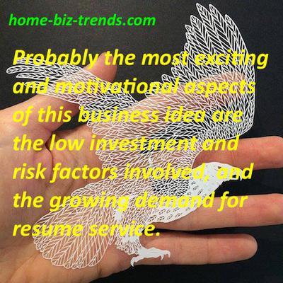 Probably the most exciting and motivational aspects of this business idea are the low investment and risk factors involved, and the growing demand for resume service.